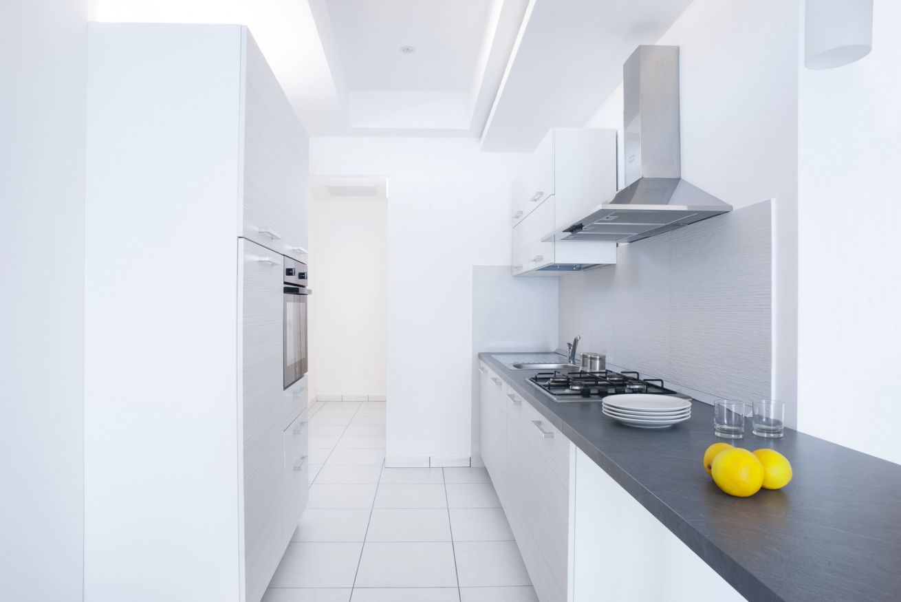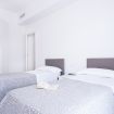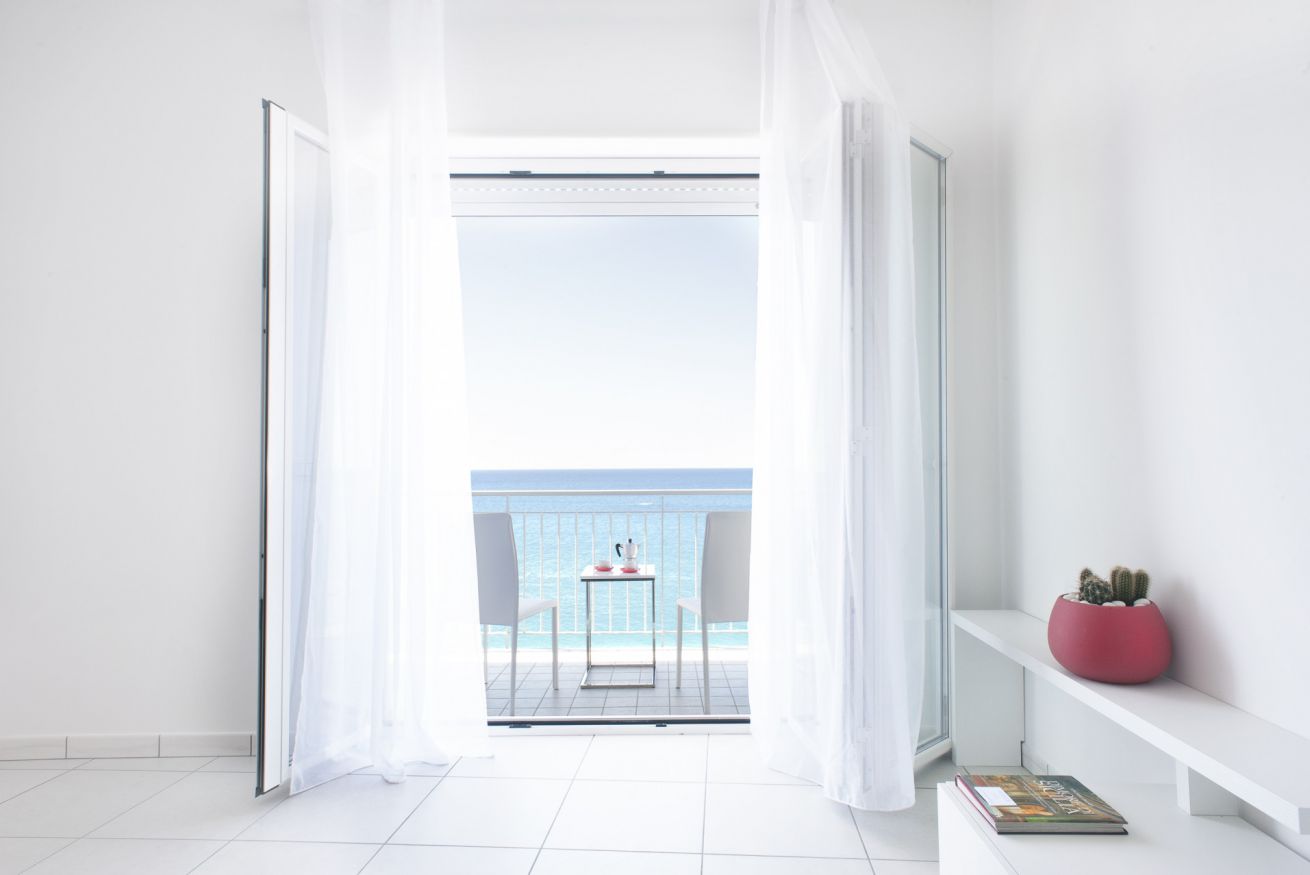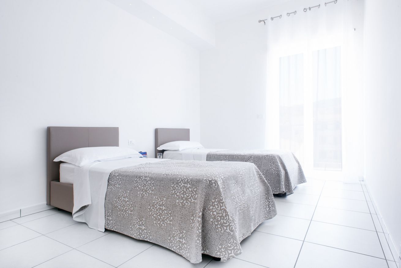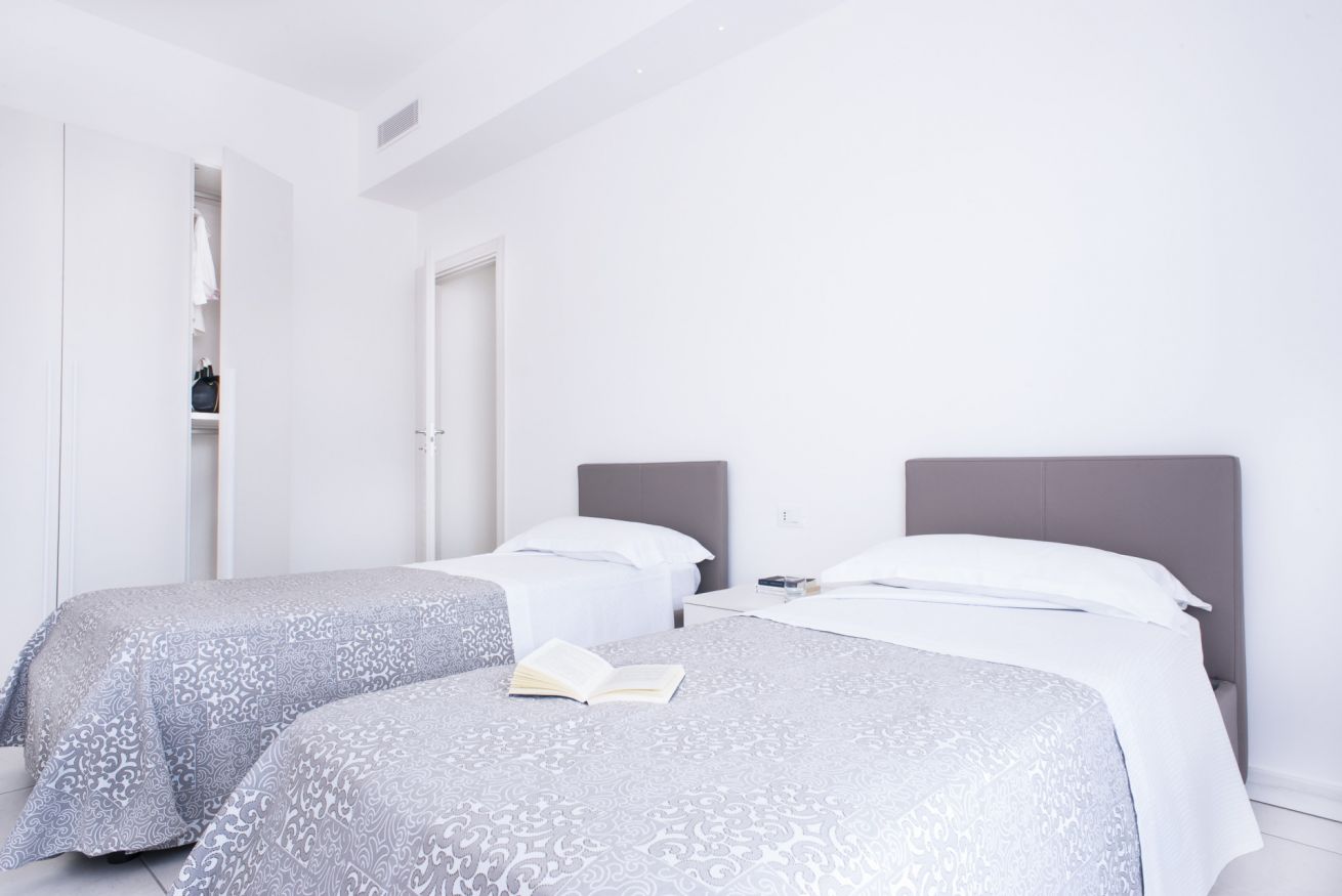 Appartamento di 73² composto da una camera da letto matrimoniale, una camera da letto con due letti singoli, ampio salotto con cucina attrezzata, tavolo da pranzo estendibile e divano letto (2 posti), bagno con ampia doccia e corredo, terrazza privata vista mare e due balconi vista monte e città.